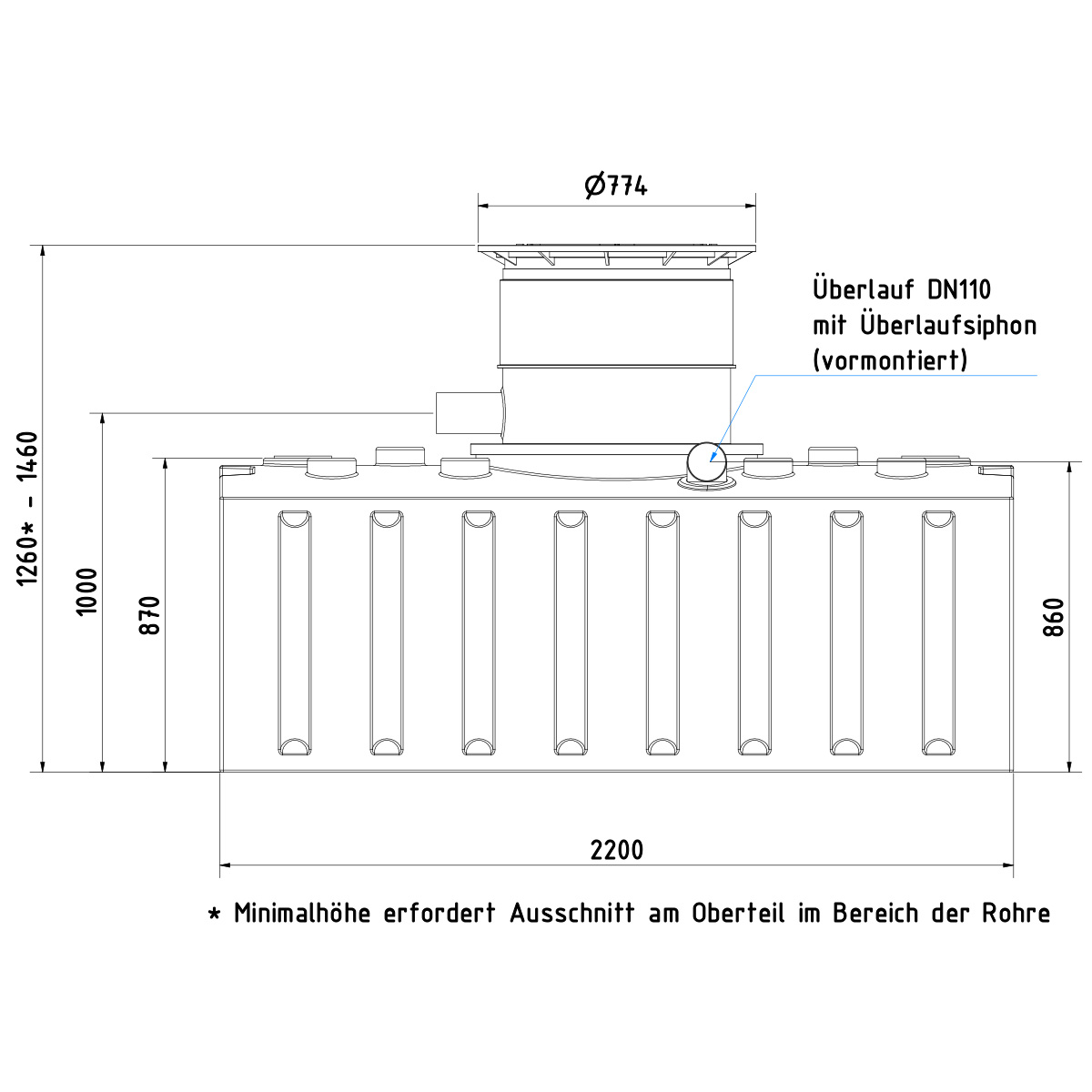 - AQ.a Line Flachtank 2000 Liter* (inkl. vormontierter Anschlüsse DN110)