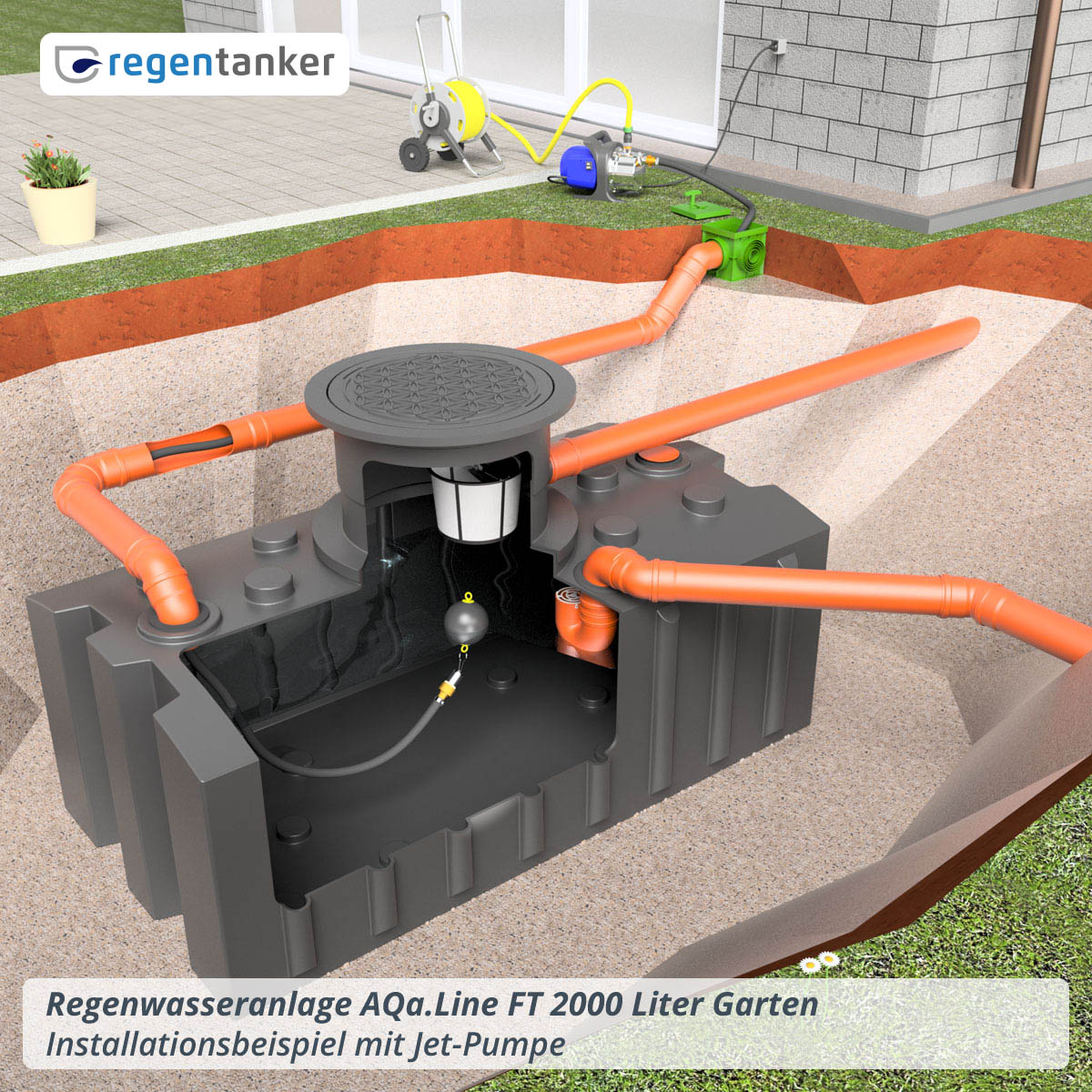 Regenwasseranlage Garten Flachtank AQa.Line 2000 L