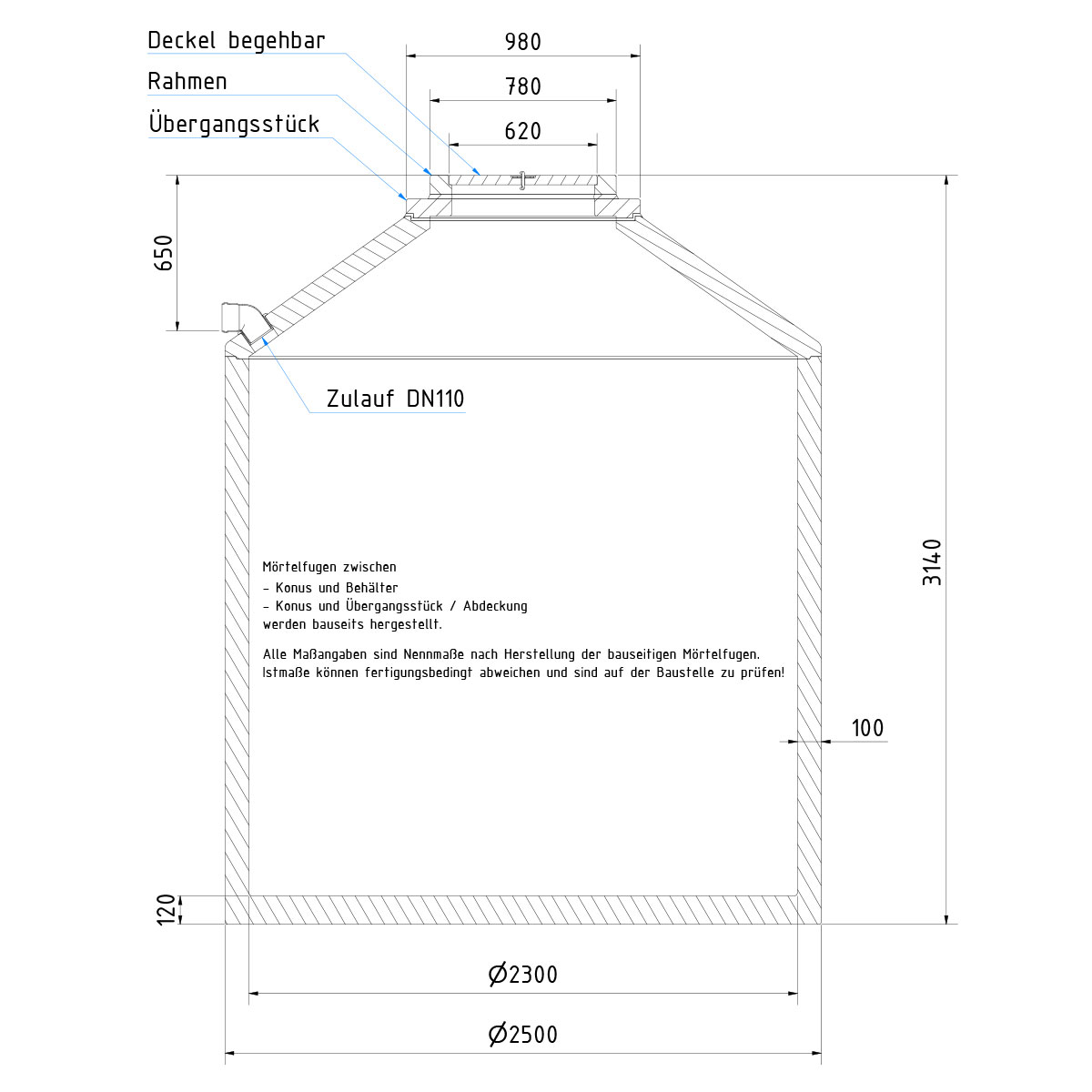 mit Schachtabdeckung befahrbar bis 5 t | 3140 mm | 2500 mm | 2500 mm | ca. 7,5 t |