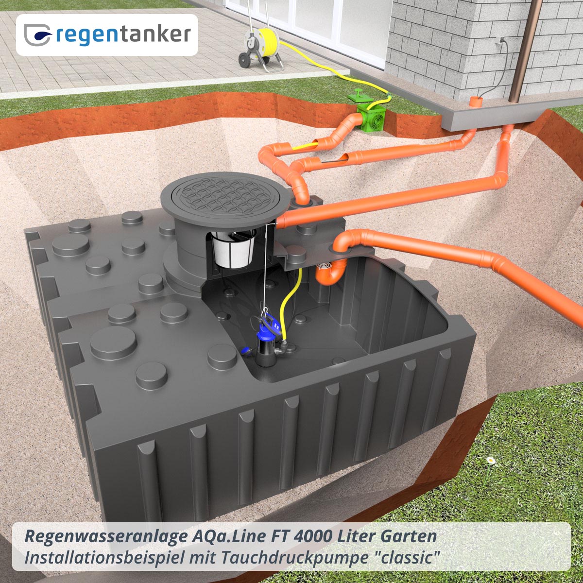 Tipp: Sie bekommen diese Komplettanlage auch als Regenwasseranlage für die Hausnutzung: Hausanlage FT "AQa.Line" 4000 L.