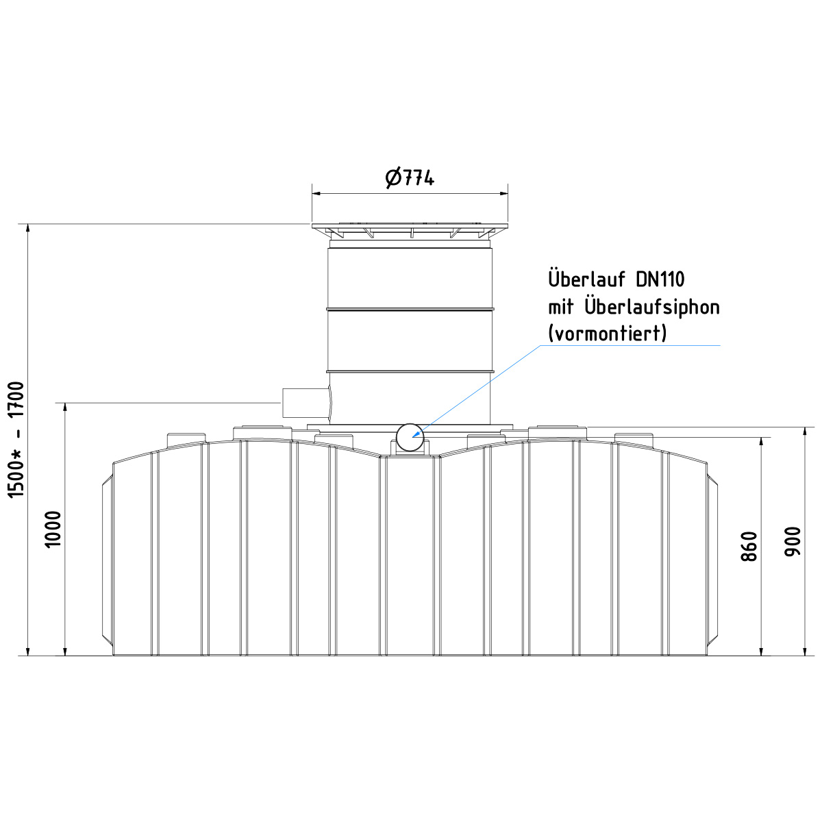 - Überlaufsiphon mit Kleintierschutz (vormontiert)