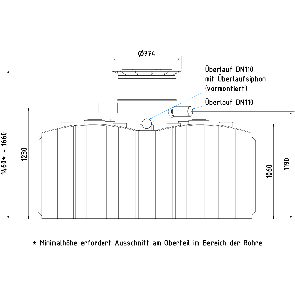 - Tankeinbaufilter inkl. Überlaufsiphon (vormontiert)