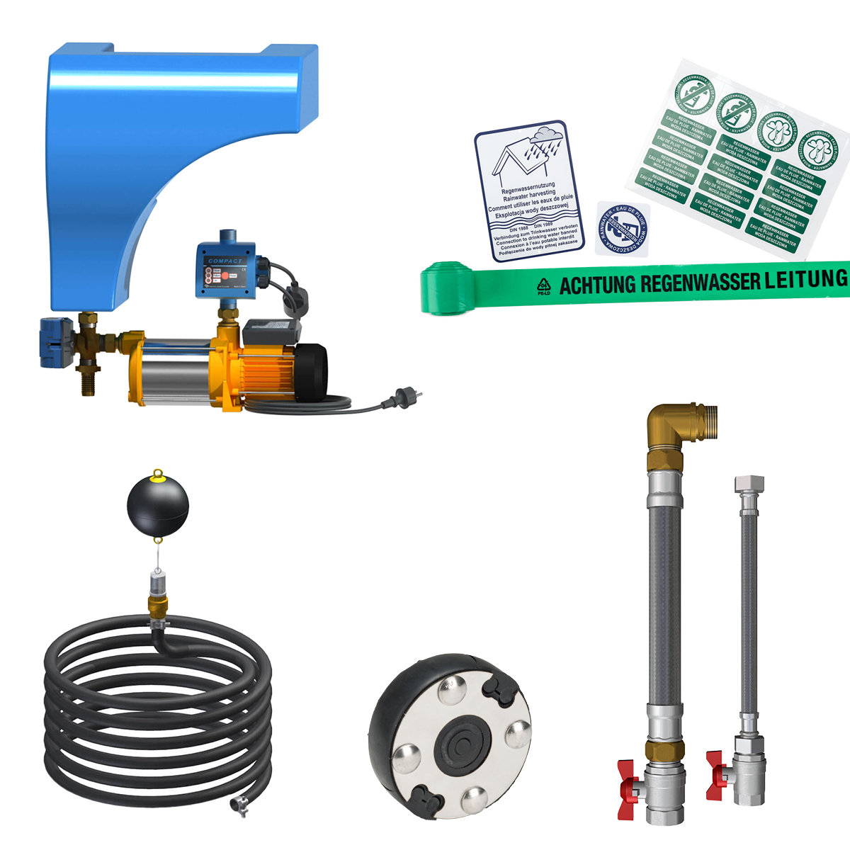 Das im Lieferumfang enthaltene Hauswasserwerk ist außerordentlich leistungsstark und verfügt über eine integrierte Nachspeiseeinheit, selbstverständlich gemäß der gesetzlichen Vorgaben. Im Bedarfsfall (komplett entleerter Zisterne) schaltet das Hauswasserwerks automatisch auf den Betrieb mit Trinkwasser um. Zudem baut das Modul genügend Druck auf, um mehrere Verbraucher innerhalb des Hauses mit Regenwasser zu versorgen und/oder den Garten zu bewässern.