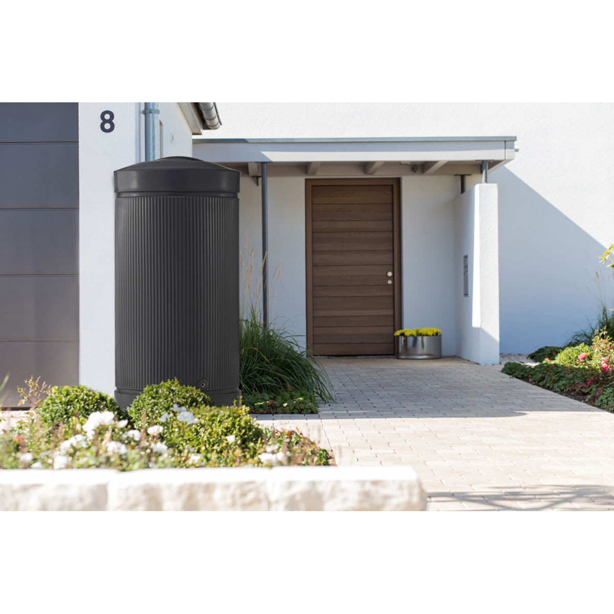 Im Vergleich zu herkömmlichen Regentonnen bietet die Regensäule eine platzsparende Alternative mit höherem Speichervolumen. Die vertikale Bauweise macht sie besonders effizient und sorgt dafür, dass Sie auch auf kleiner Fläche große Mengen Regenwasser sammeln können. Zusätzlich überzeugt sie durch ihr modernes Design in Anthrazit, Grün und Grau, das sich harmonisch in jede Umgebung einfügt.