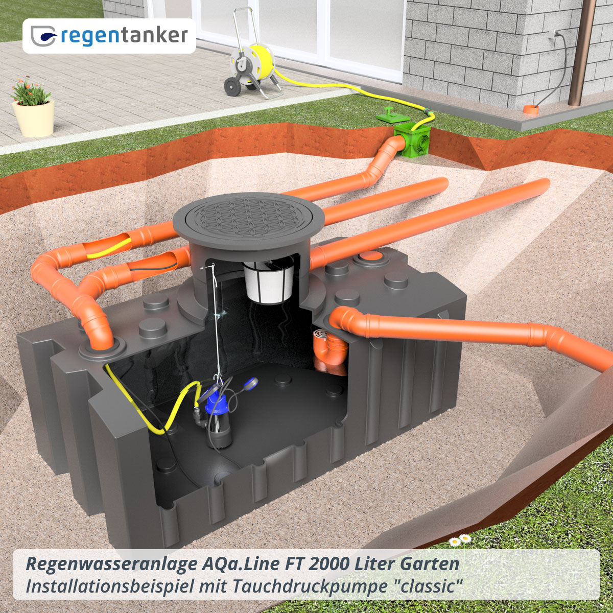 Regenwasseranlage Garten Flachtank AQa.Line 2000 L