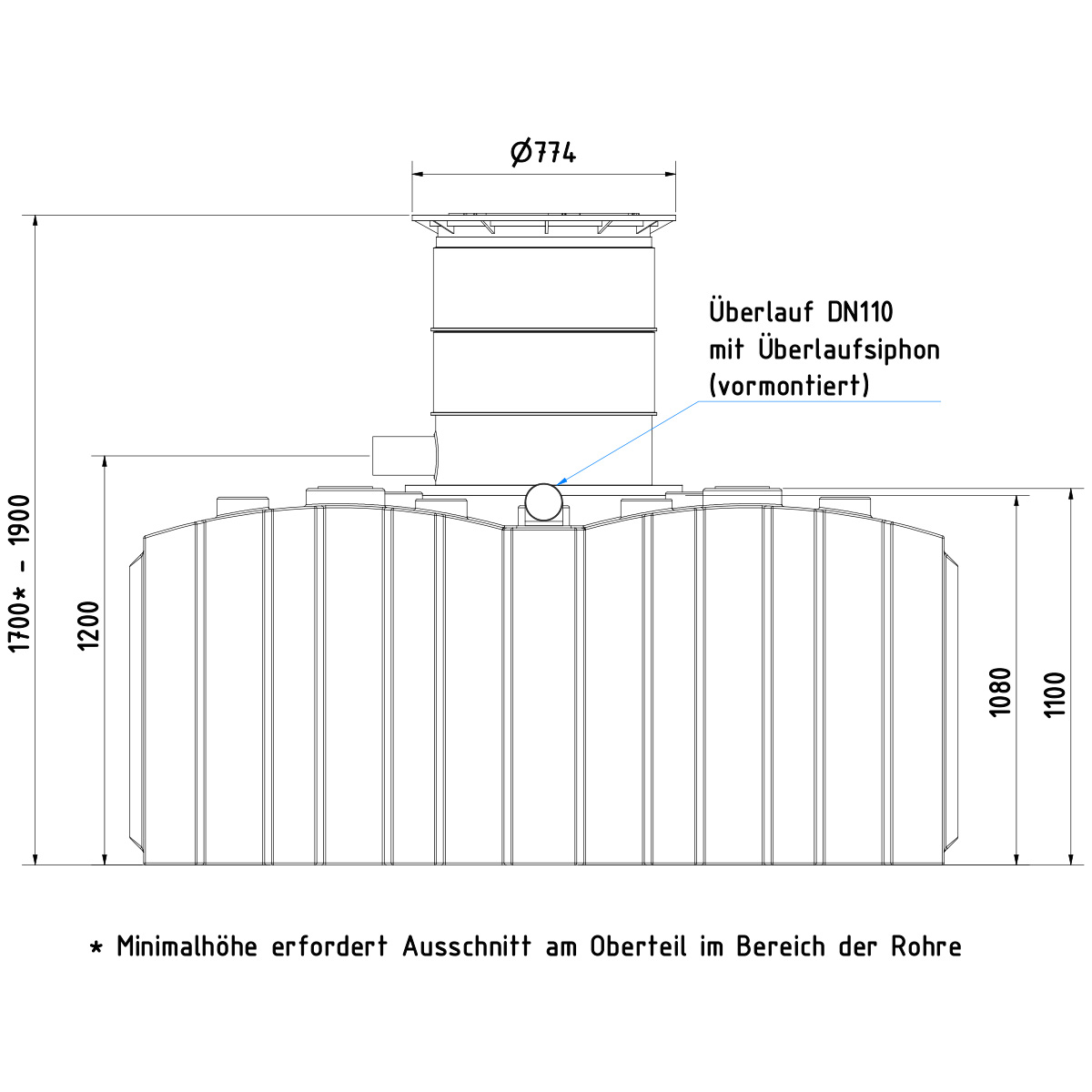 Mit diesen kompakten Abmessungen und dem geringen Gewicht lässt sich der Flachtank mühelos durch schmale Zuwegungen oder Gartentüren transportieren und an Ort und Stelle installieren. Der Tank wird unterirdisch vergraben, wodurch er optimal vor äußeren Einflüssen geschützt und der benötigte Platz auf Ihrem Grundstück effizient genutzt wird.