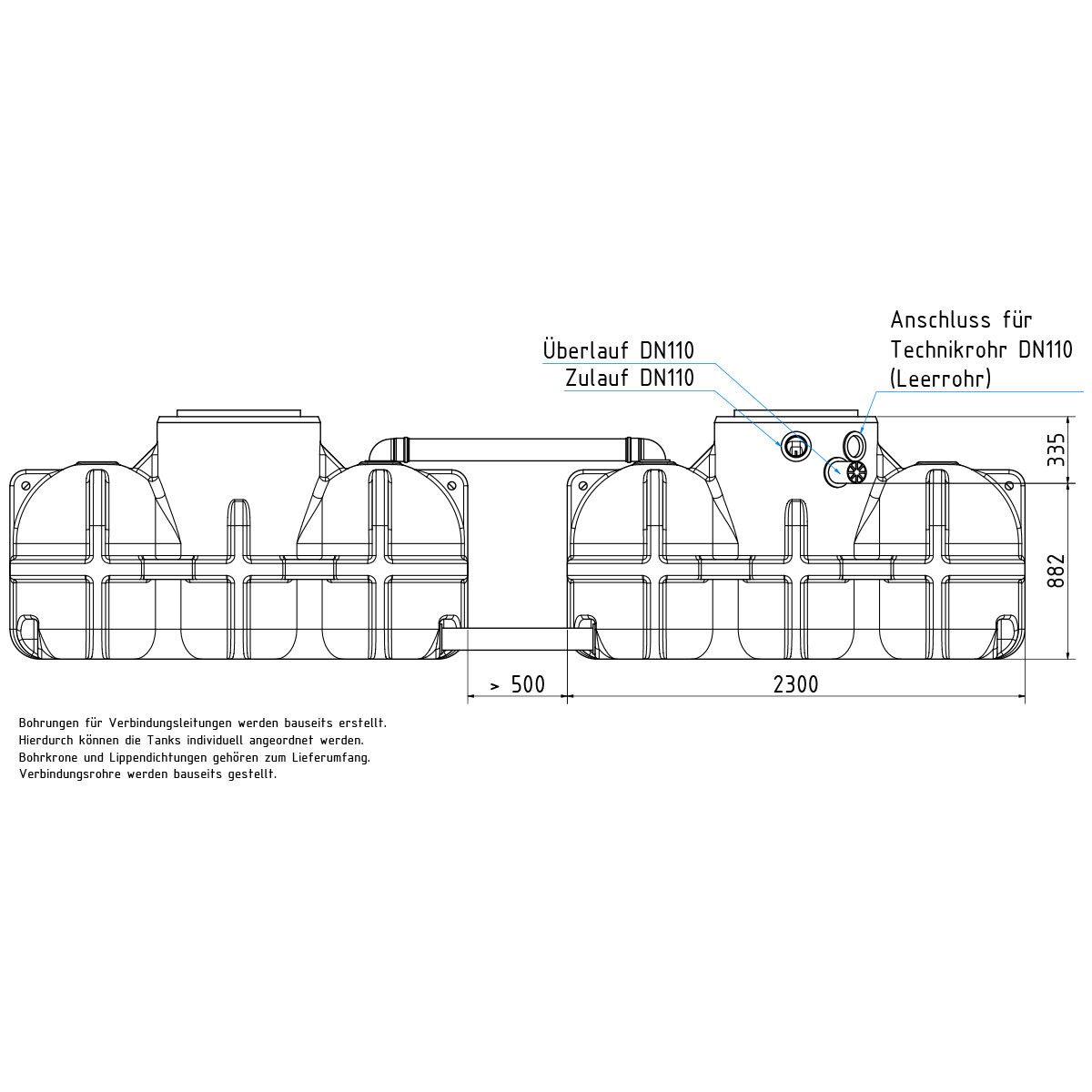 Pluvo Plus 10.000 L (5.000 L pro Tank) | Höhe | Breite | Länge | Gewicht |