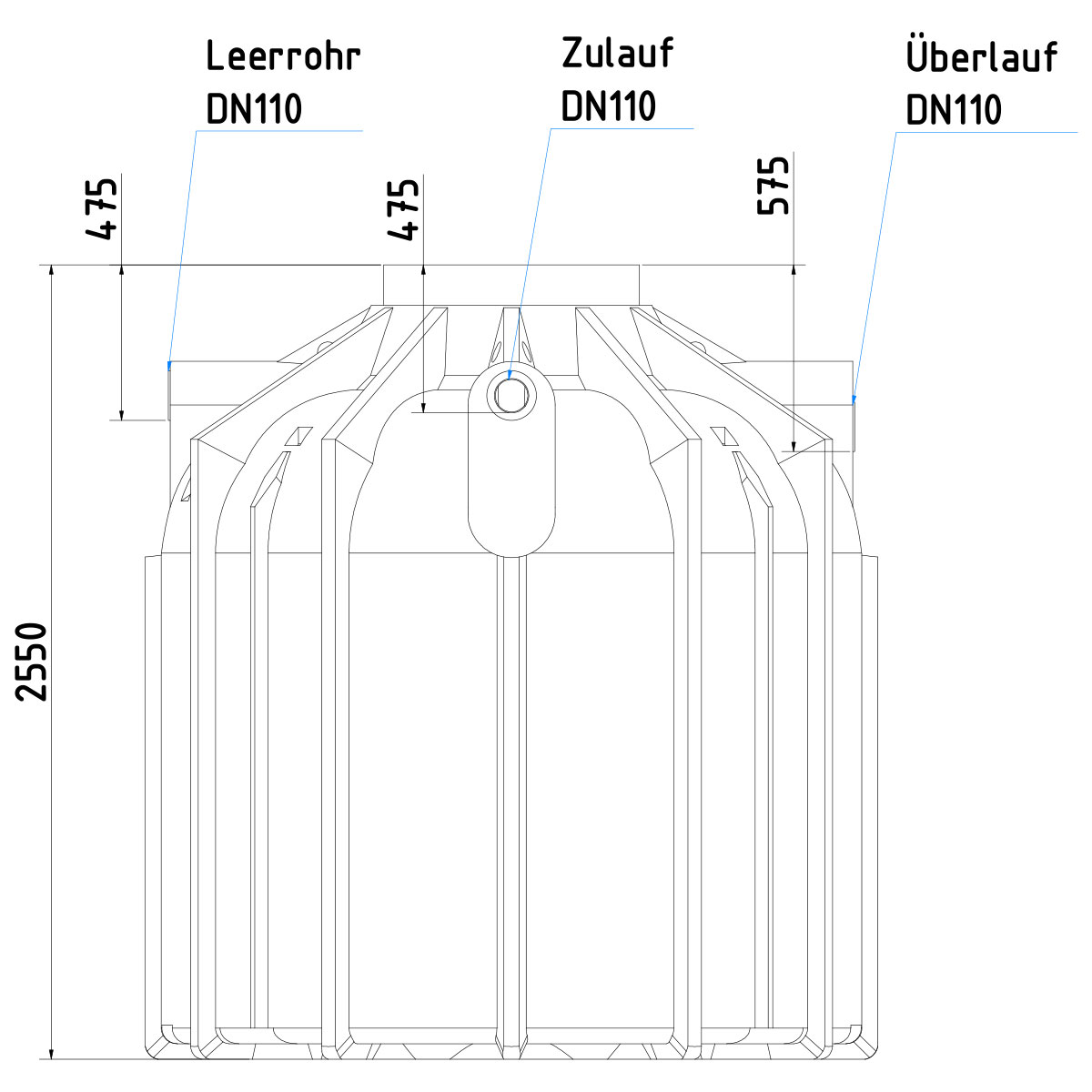 - Zisterne Pluvo 8300 Liter* (inkl. 3x Lippendichtung DN 100 für Zulauf und Ablauf und Leer vormontiert)