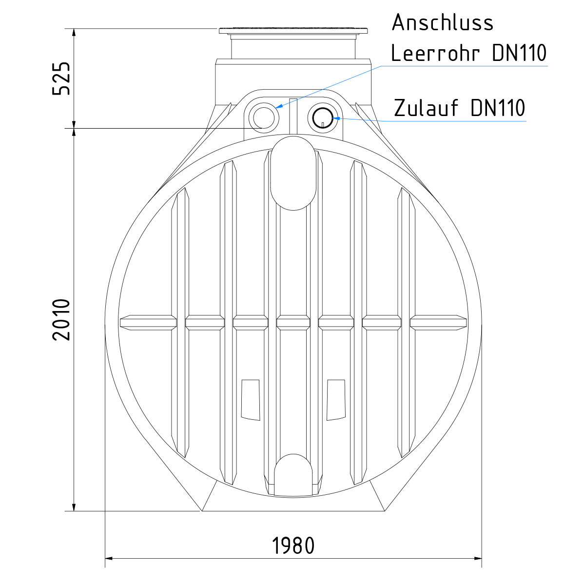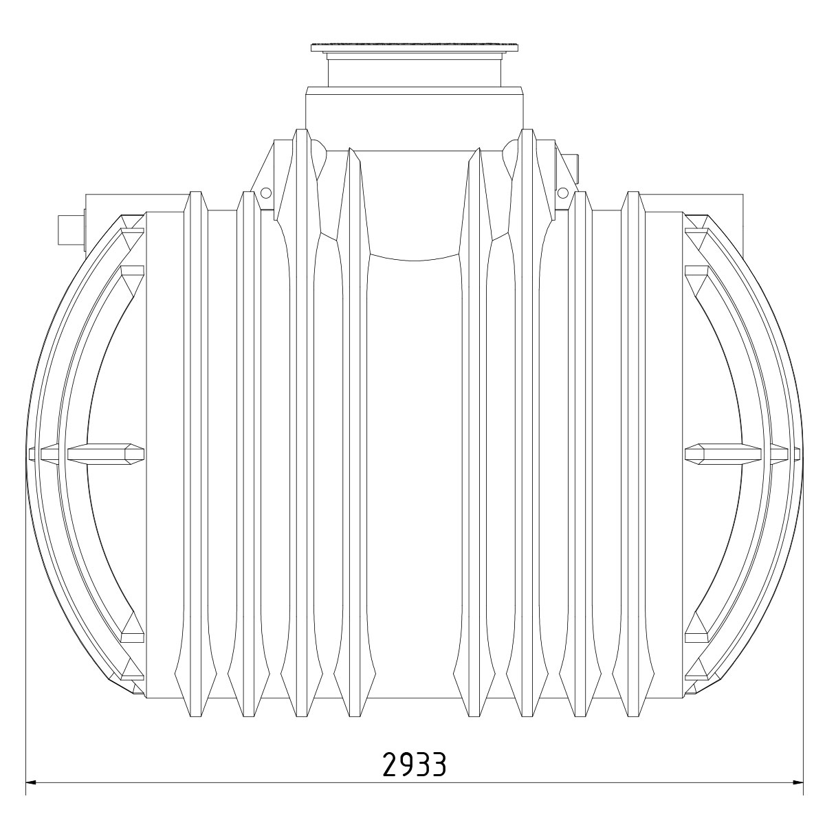 Mit einer Länge von 2933 mm, einer Breite von 1980 mm und einer Höhe von 2375 mm ist die Zisterne ideal für größere Projekte. Ihr Gewicht von 228 kg erlaubt dennoch eine relativ einfache Handhabung beim Einbau. Vormontierte Anschlüsse (DN100) für Zulauf, Ablauf und Leerrohr sorgen dafür, dass die Installation schnell und problemlos erfolgen kann.