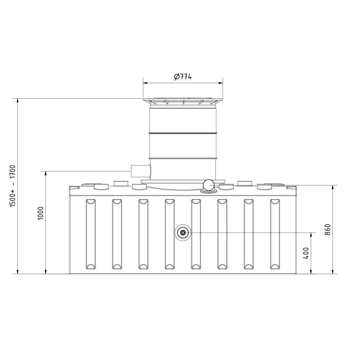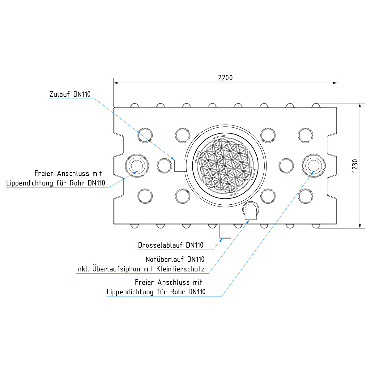 - DN110-Anschlüsse für Zulauf, Retentionsablauf und Technik