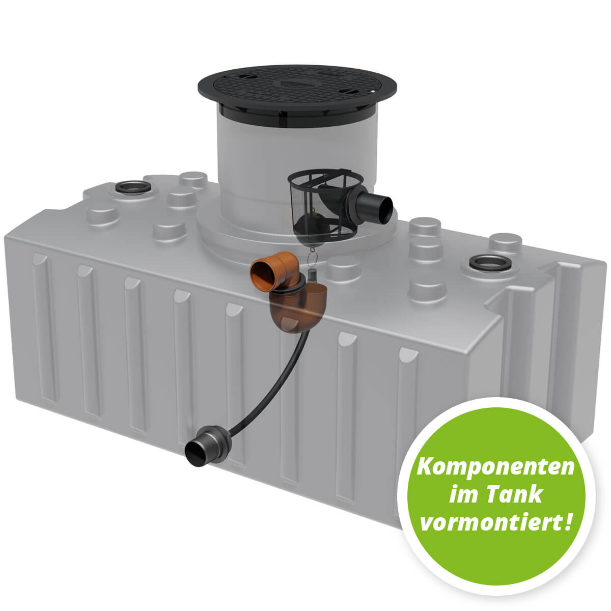 - inkl. vormontierter Anschlüsse für 50% Rückhalte- / 50% Nutzvolumen