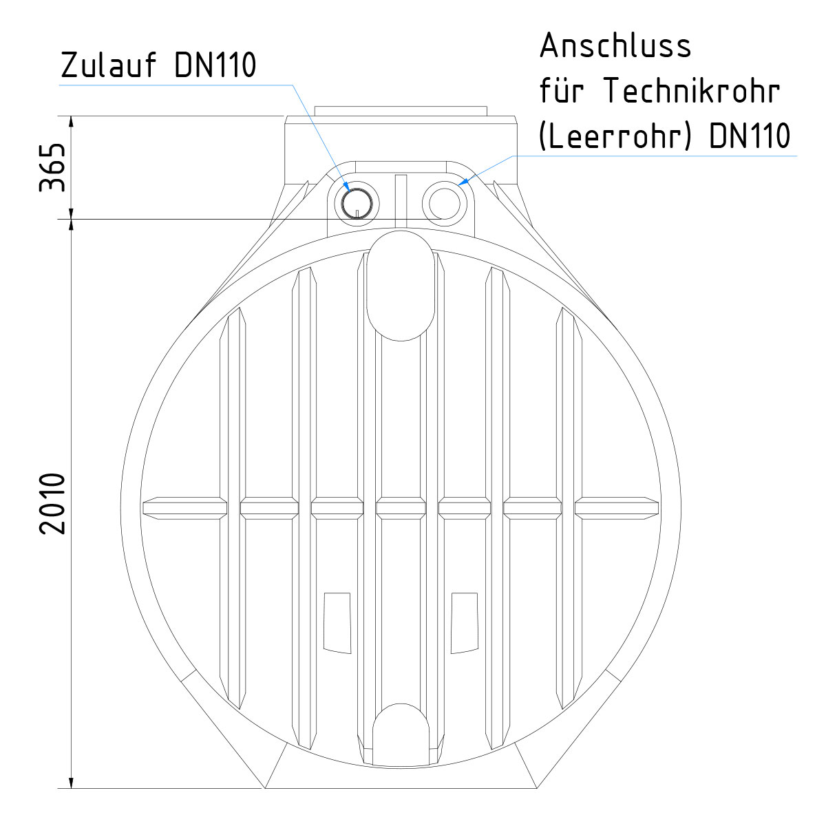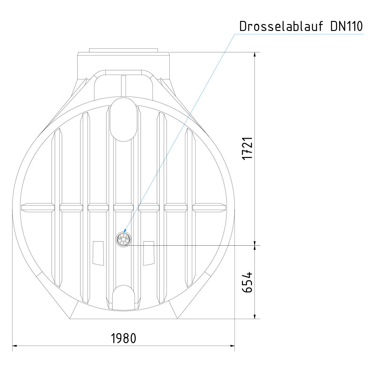 - 4550 Liter Retentionsvolumen / 2450 Liter Nutzvolumen
