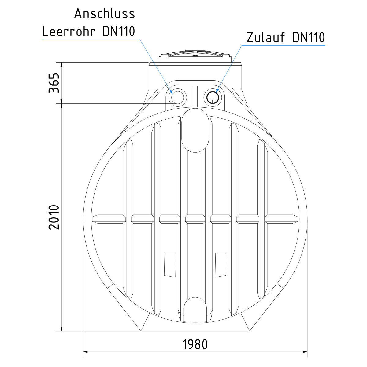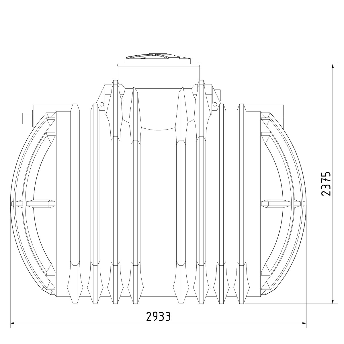 Mit einer Länge von 2933 mm, einer Breite von 1980 mm und einer Höhe von 2375 mm ist die Zisterne ideal für größere Projekte. Ihr Gewicht von 228 kg erlaubt dennoch eine relativ einfache Handhabung beim Einbau. Vormontierte Anschlüsse (DN100) für Zulauf, Ablauf und Leerrohr sorgen dafür, dass die Installation schnell und problemlos erfolgen kann.