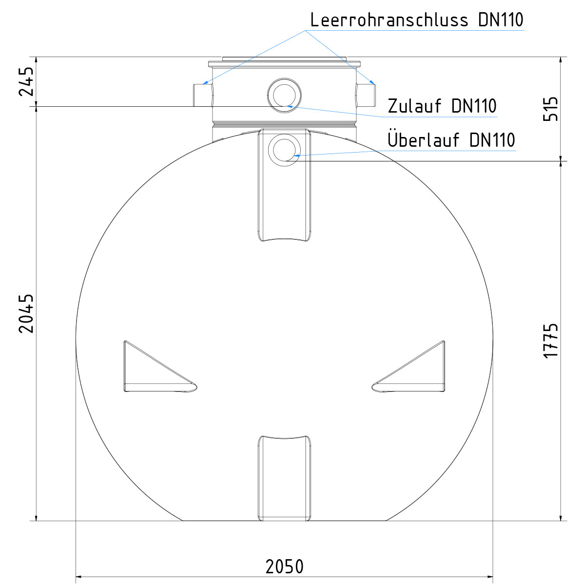 Mit einer kompakten Größe von 2.370 x 2.050 x 2.290 mm und einem Gewicht von 201 kg ist die Zisterne Smart 6.000 Liter vielseitig einsetzbar. Sie wird mit vier Anschlüssen (DN100) geliefert, die Zulauf, zwei Technikrohre und den Überlauf ermöglichen – so können Sie das Regenwasser effizient sammeln und abführen.